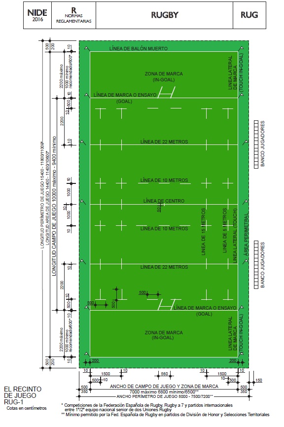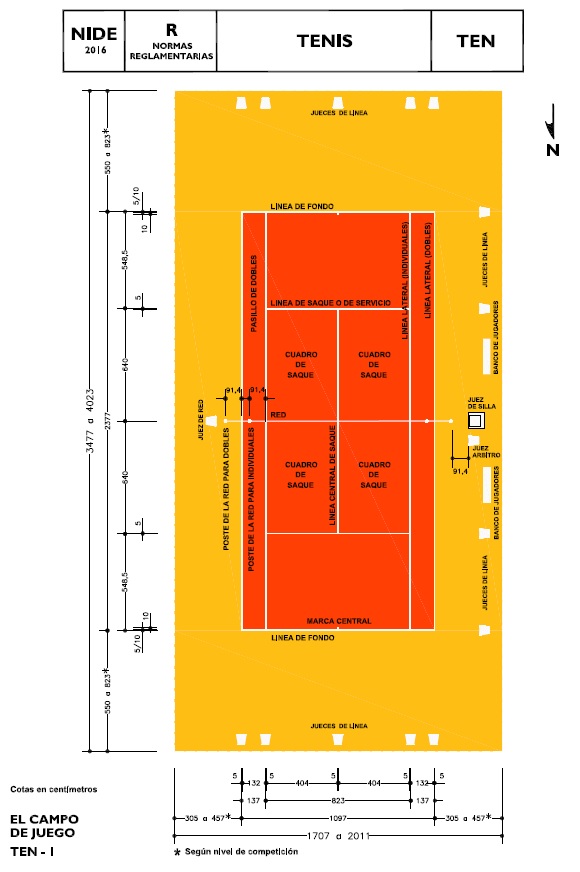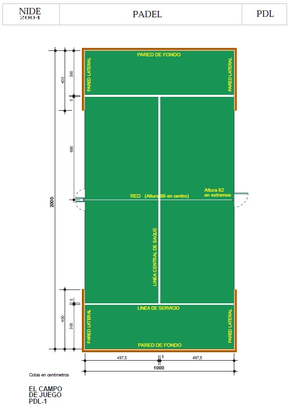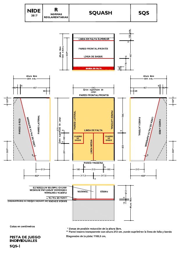 DEPORTE | DIMENSIONES PISTA (m) | PLANO PLANTA | DETALLES TÉCNICOS | AÑO REGLAMENTO |